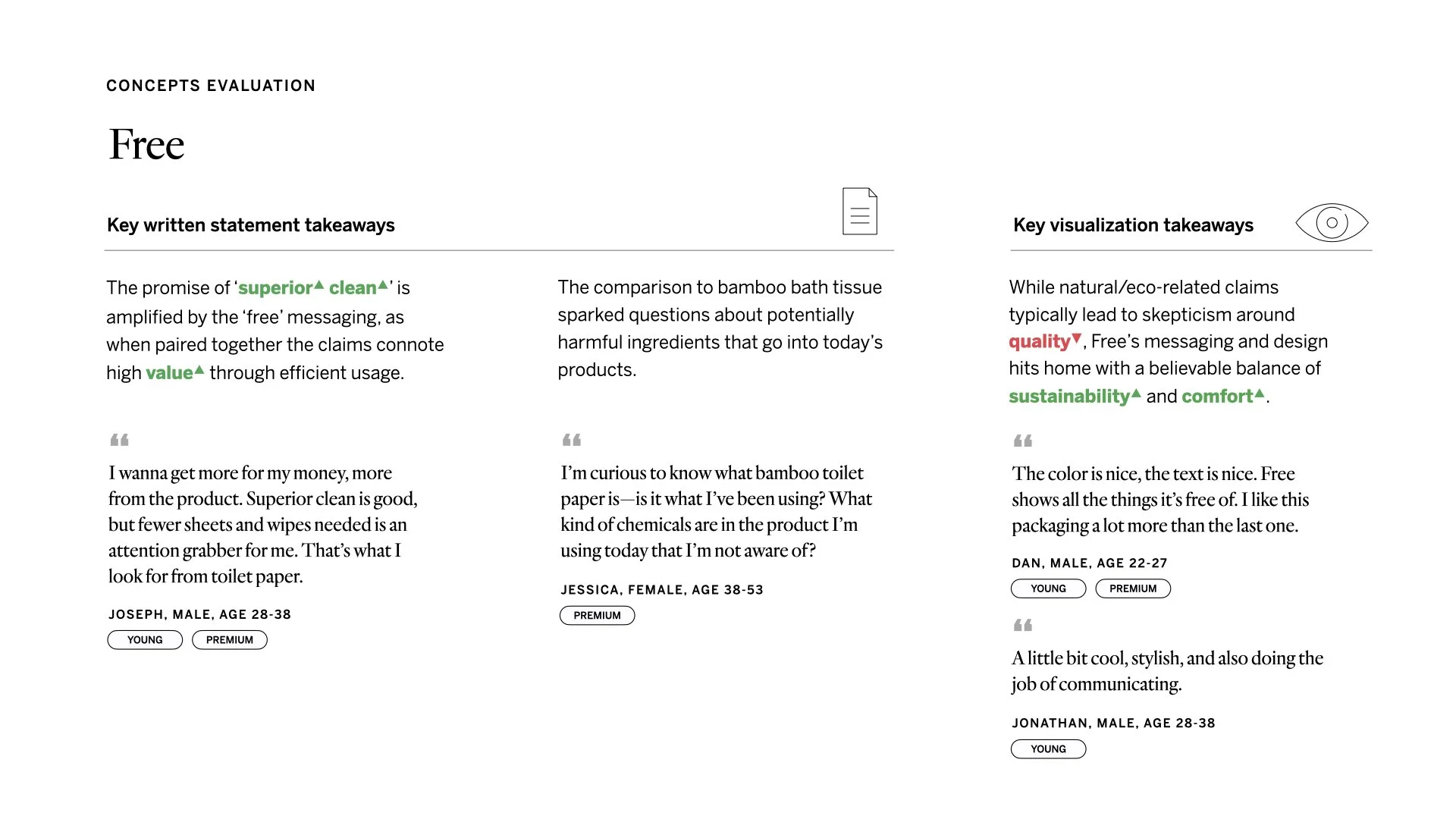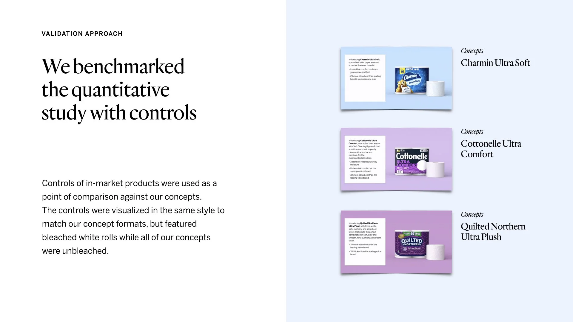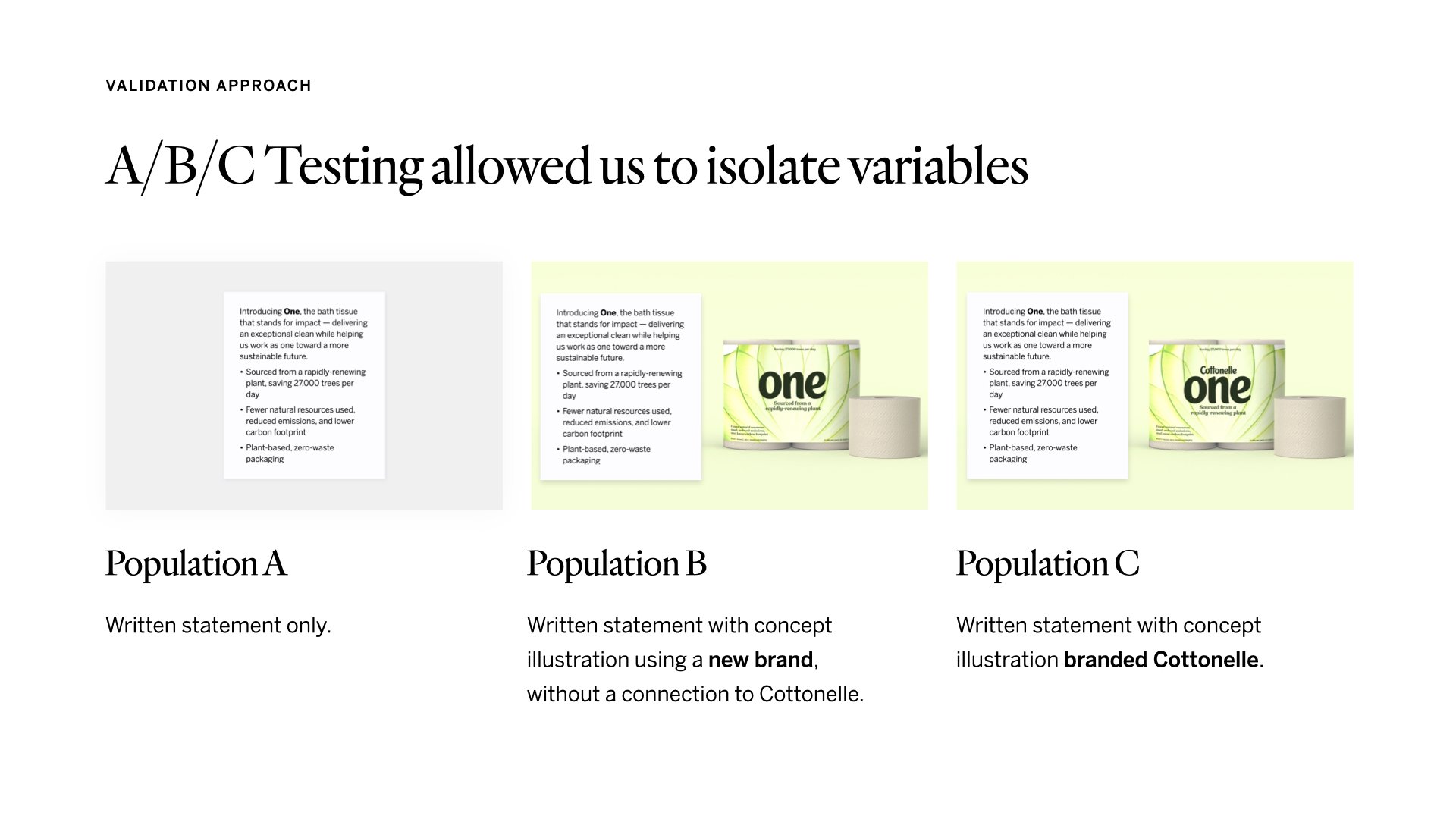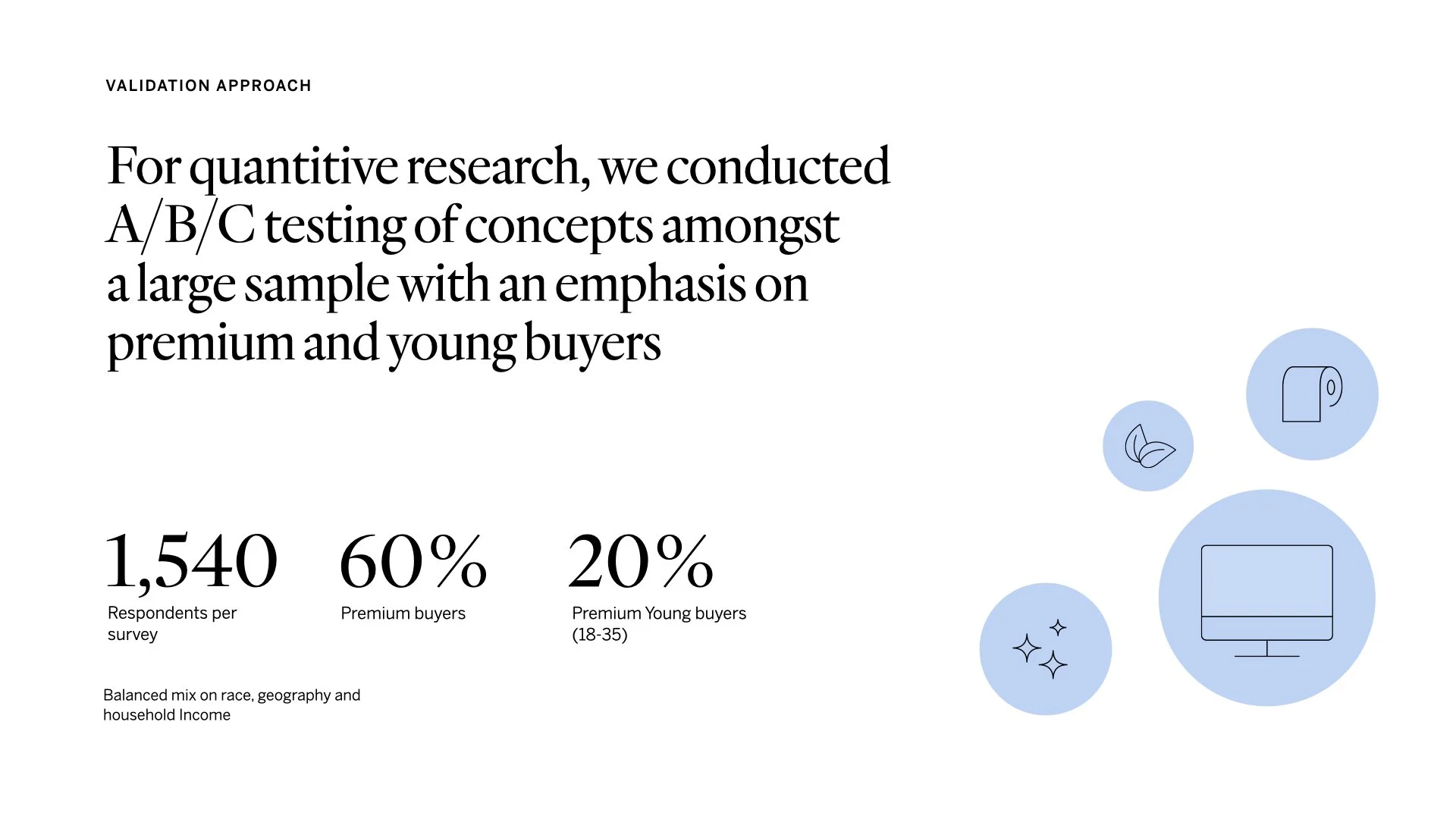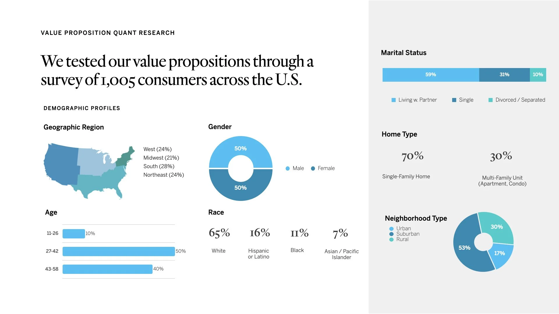 We tested these value propositions via a quantitative survey over a representative sample population to gauge reaction to 4 key attributes: appeal, believability, uniqueness, and likelihood to switch.