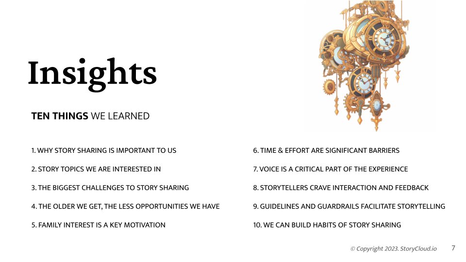 I scheduled an introductory zoom call, provided users with a list of 20 prompts to choose from, and asked them to record as many short stories as they wanted for 2 weeks.